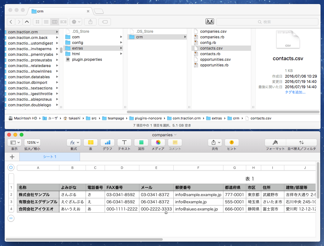 - companies.csv ... 取引先のサンプル CSV ファイルです。