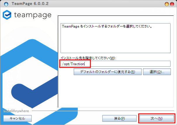 メモ:ここでは /opt/Traction を指定しています。