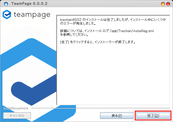 インストールが完了した旨のメッセージが表示されます。[完了] ボタンをクリックして終了してください。