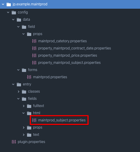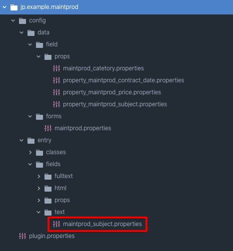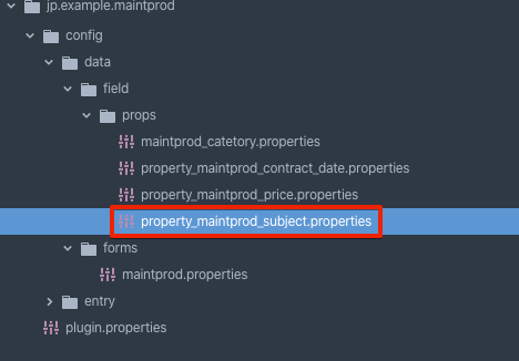 部品の名前が「property_maintprod_subject」なので、ファイル名は property_maintprod_subject.properties になります。