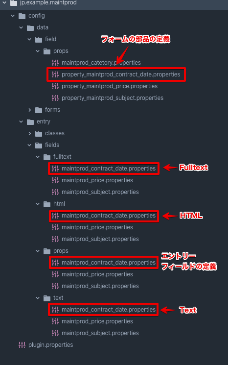エントリーフィルードの全体的な定義ファイル maintprod_contract_date.properties を config/entry/fields/props に作成します。