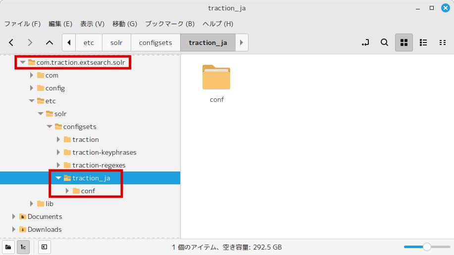 solr.JapaneseTokenizerFactory などの日本語用の記述があることを確認します。traction_ja_conf.png