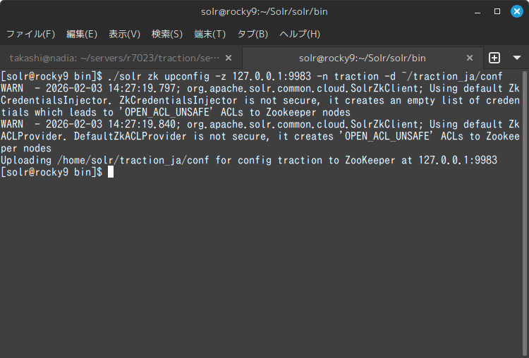 ./solr zk upconfig -z 127.0.0.1:9983 -n traction -d ~/traction_ja/conf