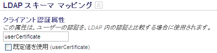 上記の検索を行うと、合致する LDAP のレコードが返されます。この「クライアント認証属性」の設定は、検索実行時にどの値にクライアント証明書を含ませるかを規定します。
