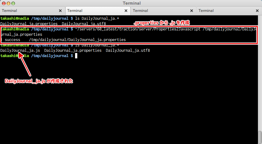 実行すると、下図のように DailyJournal.properties が DailyJournal.js に変換されます。