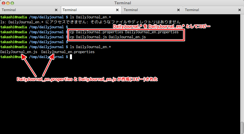 実行すると、下図のように DailyJournal_ja.utf8 から DailyJournal_ja.properties ファイルが作成されます。