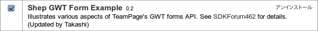 サーバーセットアップ > プラグイン のインストール済みプラグイン一覧に [Shep GWT Form Example] が表示されます。