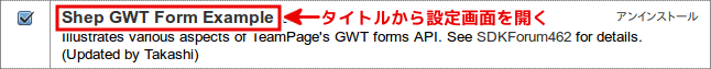 サーバーセットアップ > プラグインの [Shep GWT Form Example] プラグインのタイトルをクリックします。