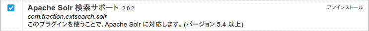 サーバーセットアップ > プラグイン ページのインストール済みプラグイン一覧に「Apache Solr 検索サポート」が表示されていることを確認します。
