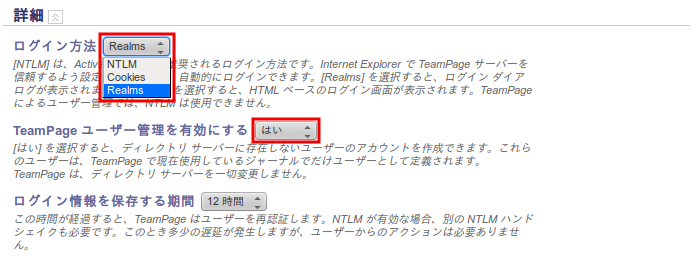 Internet Explorer を使う場合でも、TeamPage のログイン画面で認証しなければならなくなります。しかし、ログイン画面の [ログアウトするまでパスワードを保存] チェックボックスをオンにすれば、次回ログイン時には Cookies に保存された認証情報が再使用され、ログイン画面を表示せずにそのままログインできます。